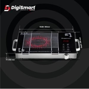 DIGISMART Emerald Induction 2500 Watts Stove with Grill Rack, Auto-Off Safety, 3 Cooking Modes, Works with All Cookware, Infrared Crystal Glass Top, Digital Soft Touch Controls, 1 Year Warranty-Black