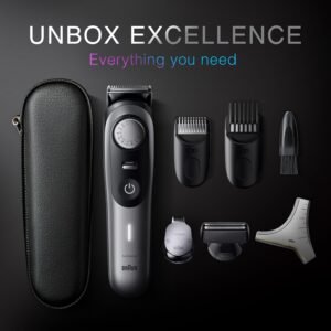 Braun All-in-One Trimmer for Men BT9520, Cordless with 180-Min Runtime, Lifetime Sharp Metal Blades, Waterproof, Precision Comb, 50+ Length Settings, Premium Case, 8-in-1