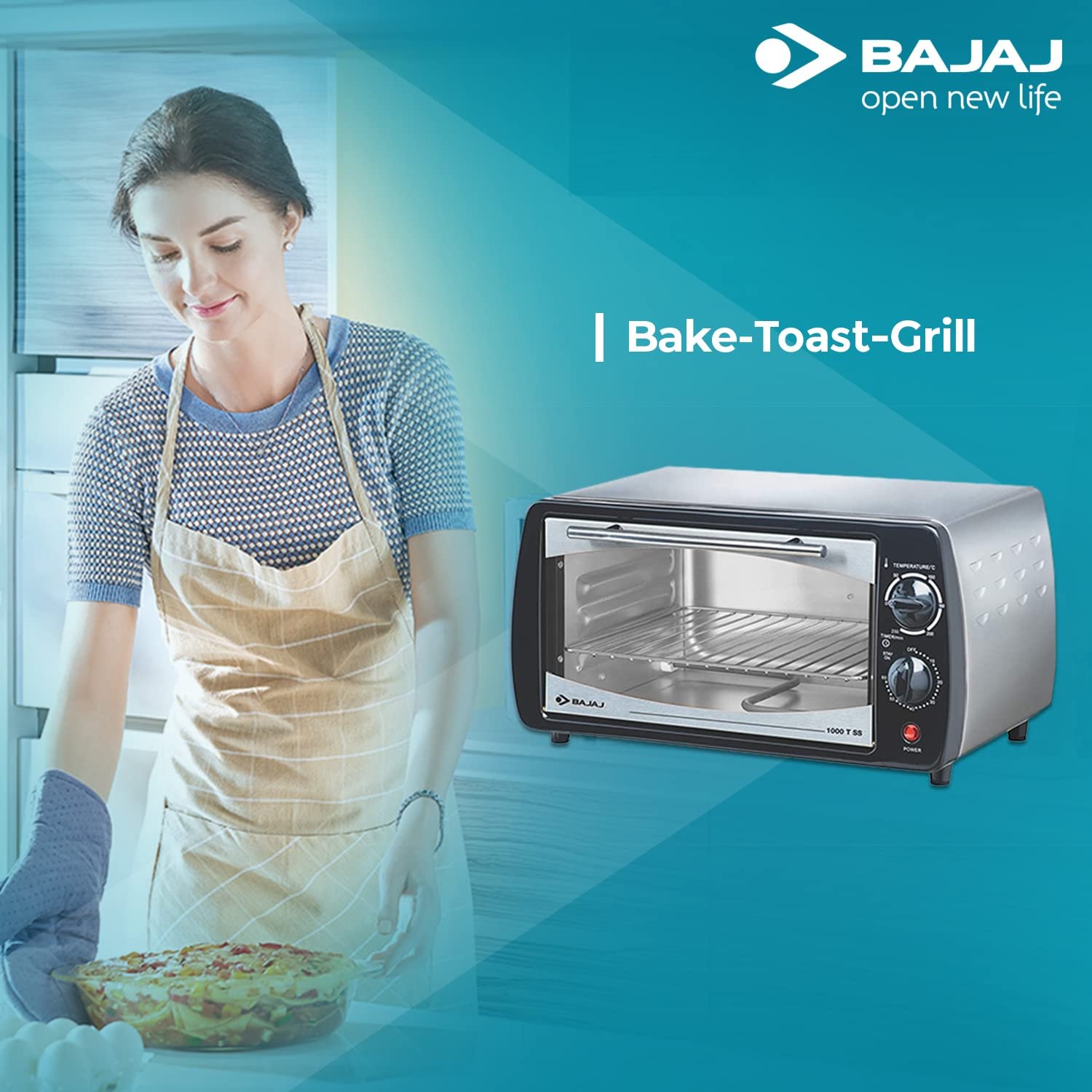 Bajaj 1000T Oven Toaster Grill (10 liter Otg) | Temperature control | Stainless Steel Body With Transparent Glass Door | Black | 2 Year Warranty | 800 Watts