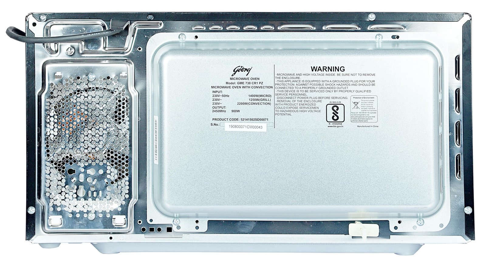 Special features: Steam clean | Stainless Steel Cavity | Multi Distribution System | Dual Grill Technology | Godrej Instachef App | 375 instacook recipes | Deodoriser Function | Defrost Function | Child lock | Rotissorie Rack