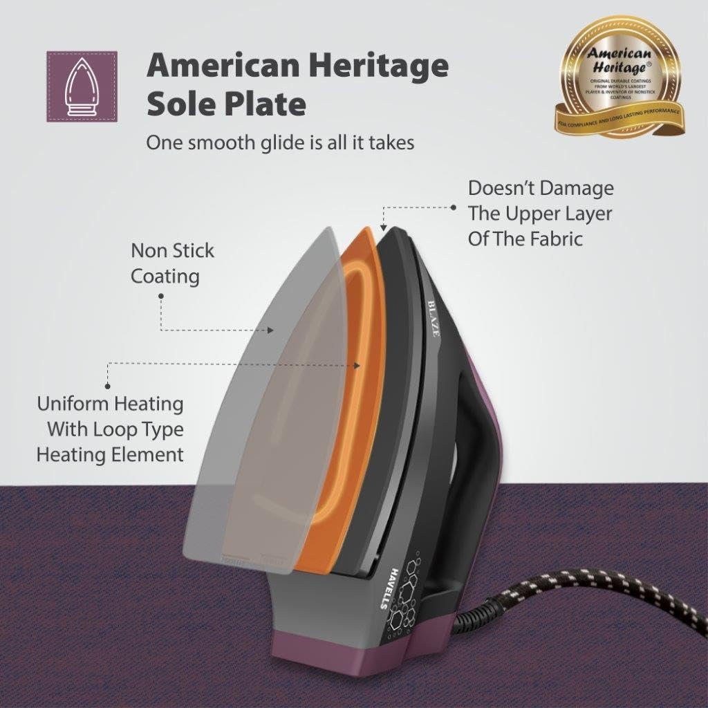 - American Heritage Non-Stick Soleplate – Premium coating ensures ultra-smooth gliding on all fabrics while protecting clothes from sticking or scorching.