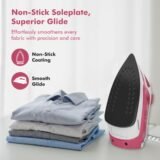 - Featuring a PTFE non-stick soleplate, the iron glides effortlessly across different fabrics. It prevents sticking, snagging, or burning of clothes, giving you safe ironing even on delicate garments while ensuring long-lasting performance with reduced fabric damage.
