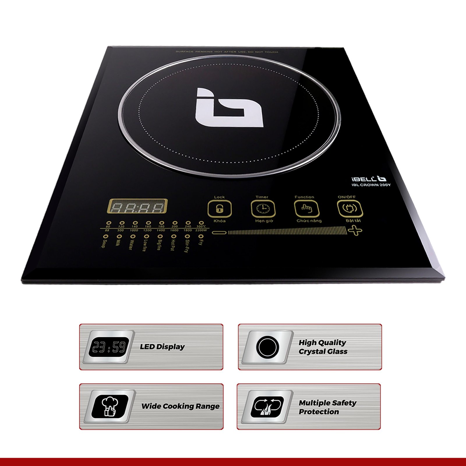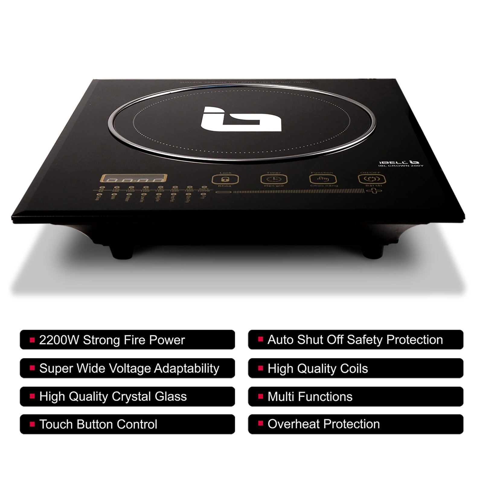 Details: The IBELL CROWN200Y Induction Cooktop offers a powerful 2200-watt performance, featuring a sleek crystal glass top and user-friendly touch buttons. Designed for convenience, it includes eight cooking modes and an auto shut-off function for enhanced safety, along with overheat protection to prevent accidents. This cooktop is not only large in size but also comes with a two-year warranty, ensuring reliability and peace of mind for users.
