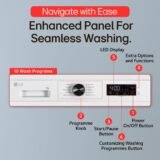 - Wash Programs: 10 Wash Programs – Cotton; Cotton+: shirts, pajamas, bed sheet, king size quilts and underwear; Mixed Fabric; Quick 30; Allergy Care: bed linen, towels, and underwear; Active Wear: yoga pants, gym shirts, and running shorts; Hand/Wool; Delicates: to protect delicate fabrics like silk, wool, bleaching, color protection or prone to tangling or shrinking; Tub Clean; Rinse+Spin: Rinses and spins clothes. Use fabric softener if needed | Display Type – Dial + Full Touch Buttons & LED Display; Water proof Panel