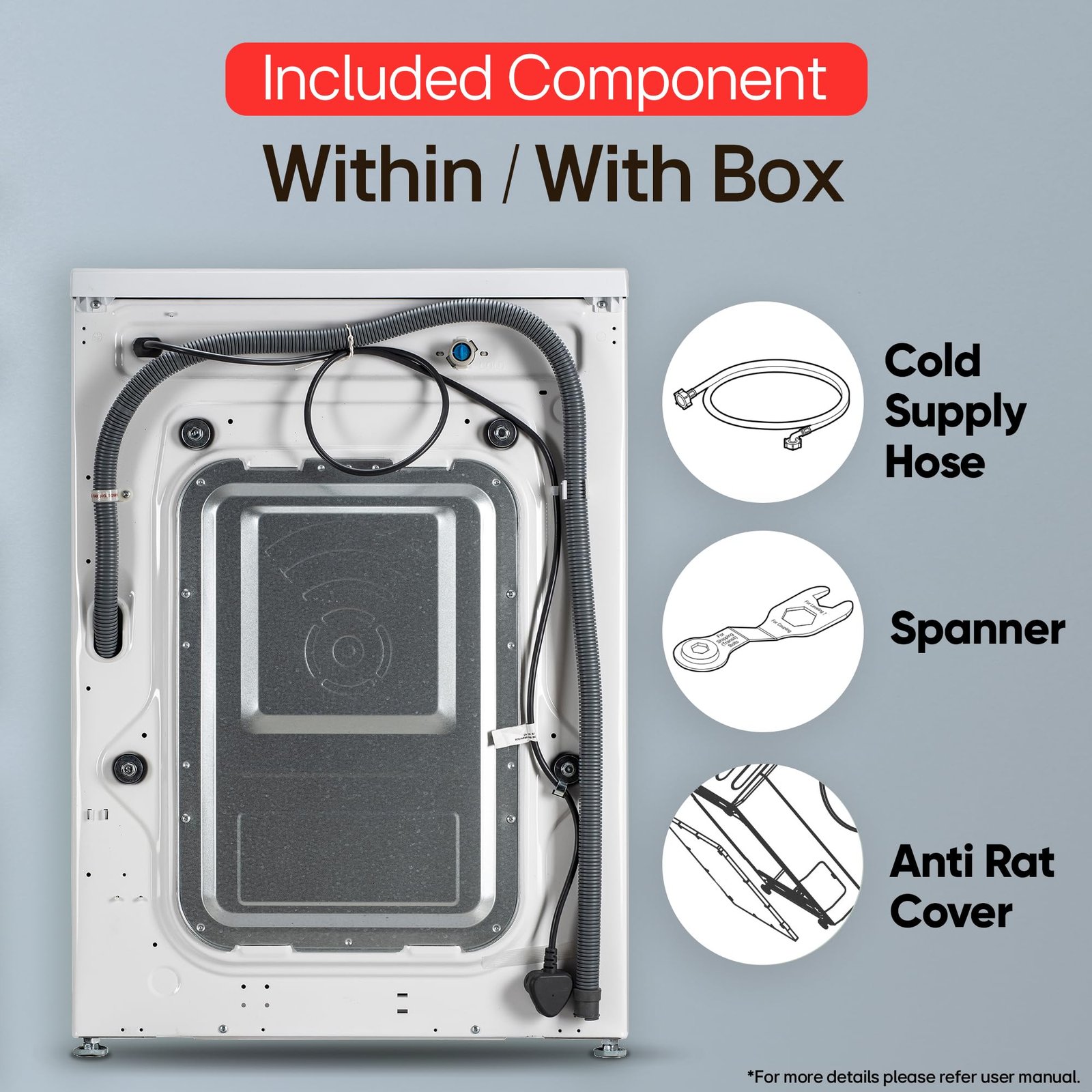 - Energy Rating: 5 Star- Best in class efficiency | Inverter direct drive technology for energy savings, less vibration & less noise | Energy consumption – 0.06 KWh/kg/cycle & Water Consumption: 8.6 L/Kg/Cycle (Please refer to BEE label for more information)