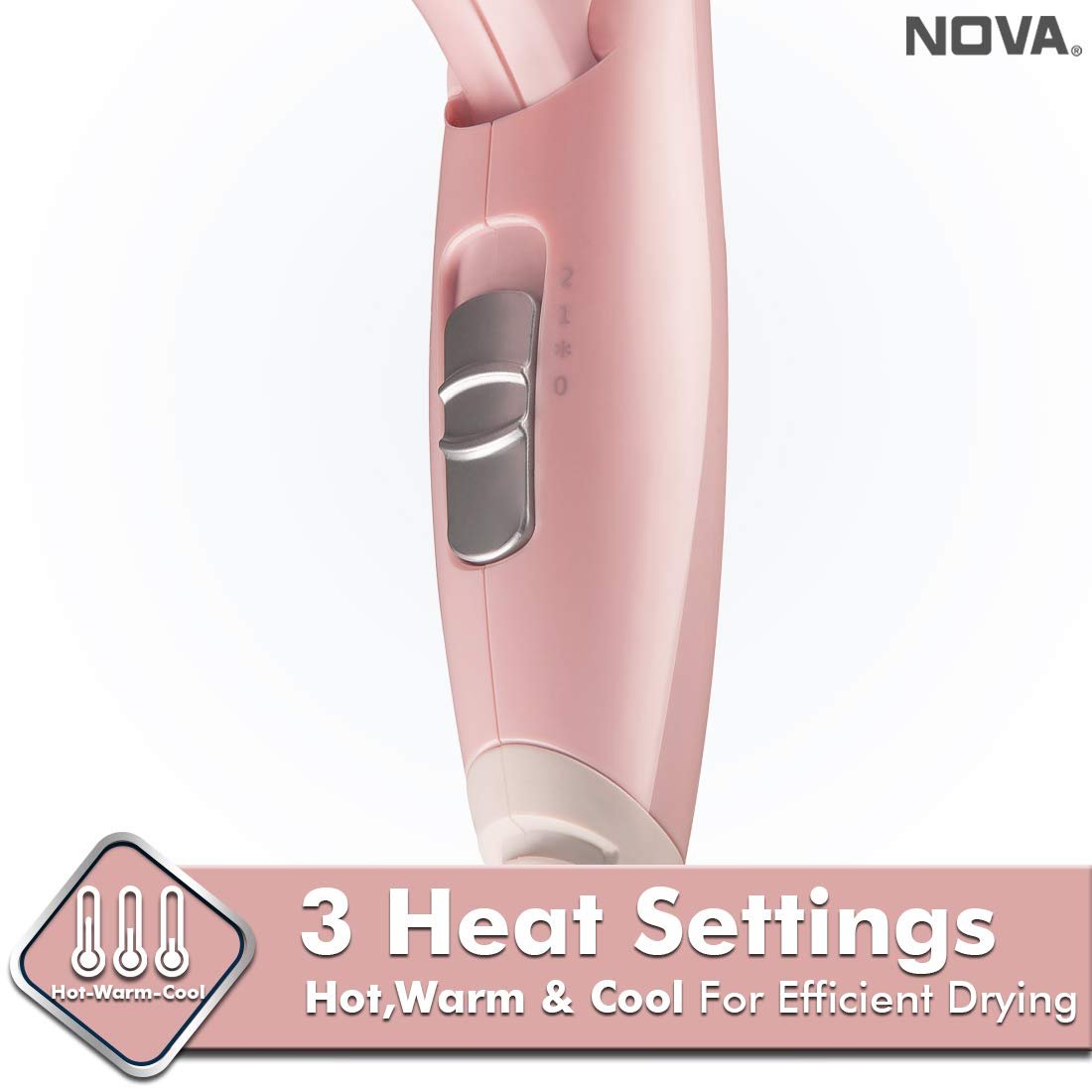 Details: This Nova Hair Dryer guarantees style with every use. This advanced hair dryer features a powerful high-torque DC motor that delivers powerful airflow, helping you dry and style your hair faster. The 2 speed and temperature setting allows for custom heat and airflow to enhance waves, curls and sleek styles. Includes a concentrator for smooth and sleek styles.