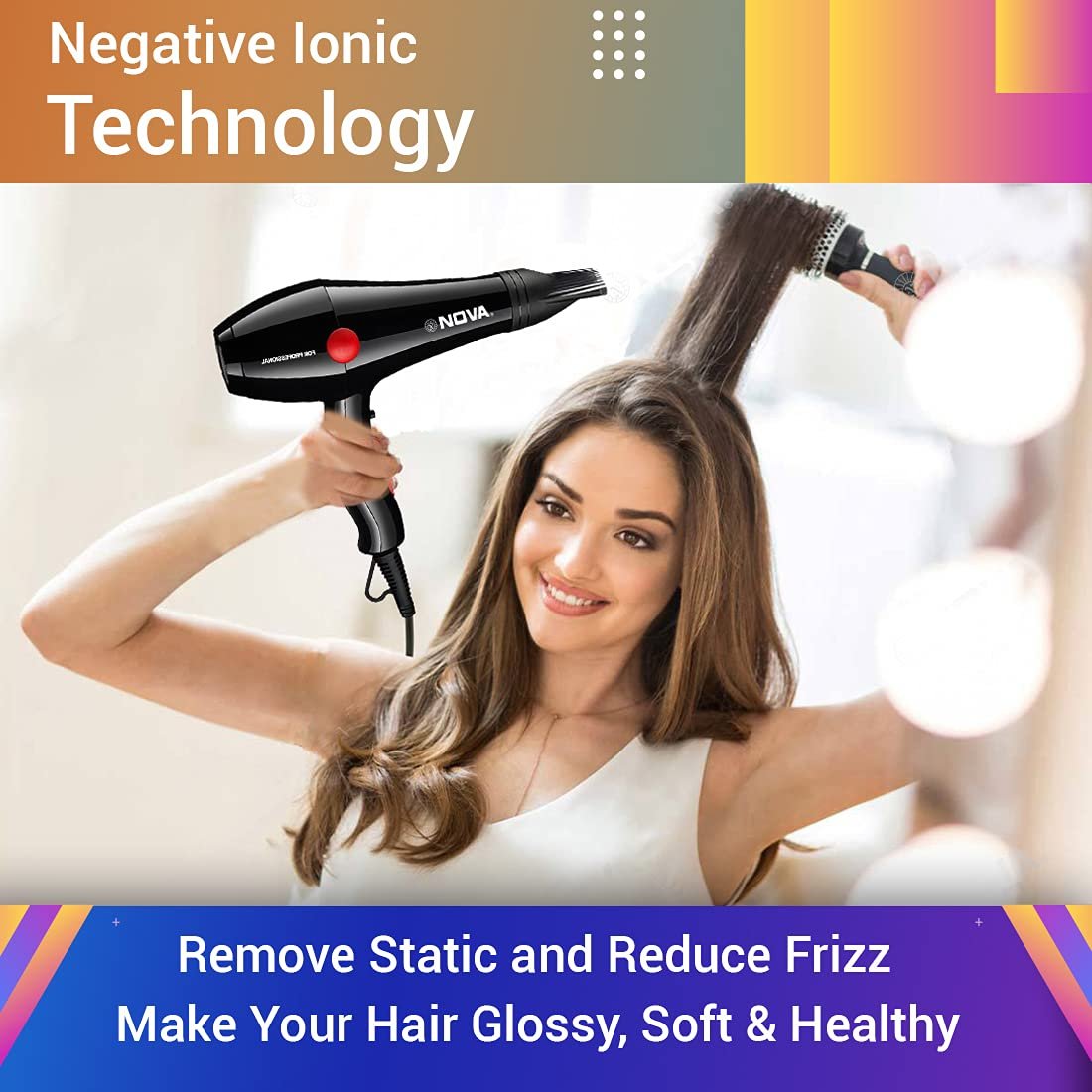 Details: Introducing Nova Professional Dryer with 1800 watts of powerful drying , so that you can get salon-like hair styling even at your home . This hair dryer features Advanced Ehd + Technology which ensures that only the right amount of heat is distributed on your hair and preventing any damage to your hair. The Shine and condition Techonlogy ensures that you hair is always silky and smooth. The Thermo protect temperature setting in this dryer also provides shine and conditions your hair, so that you have a Gorgeous looking hair style.