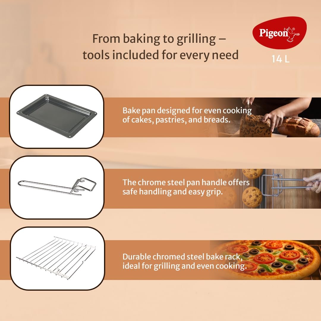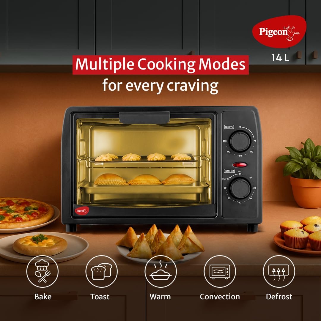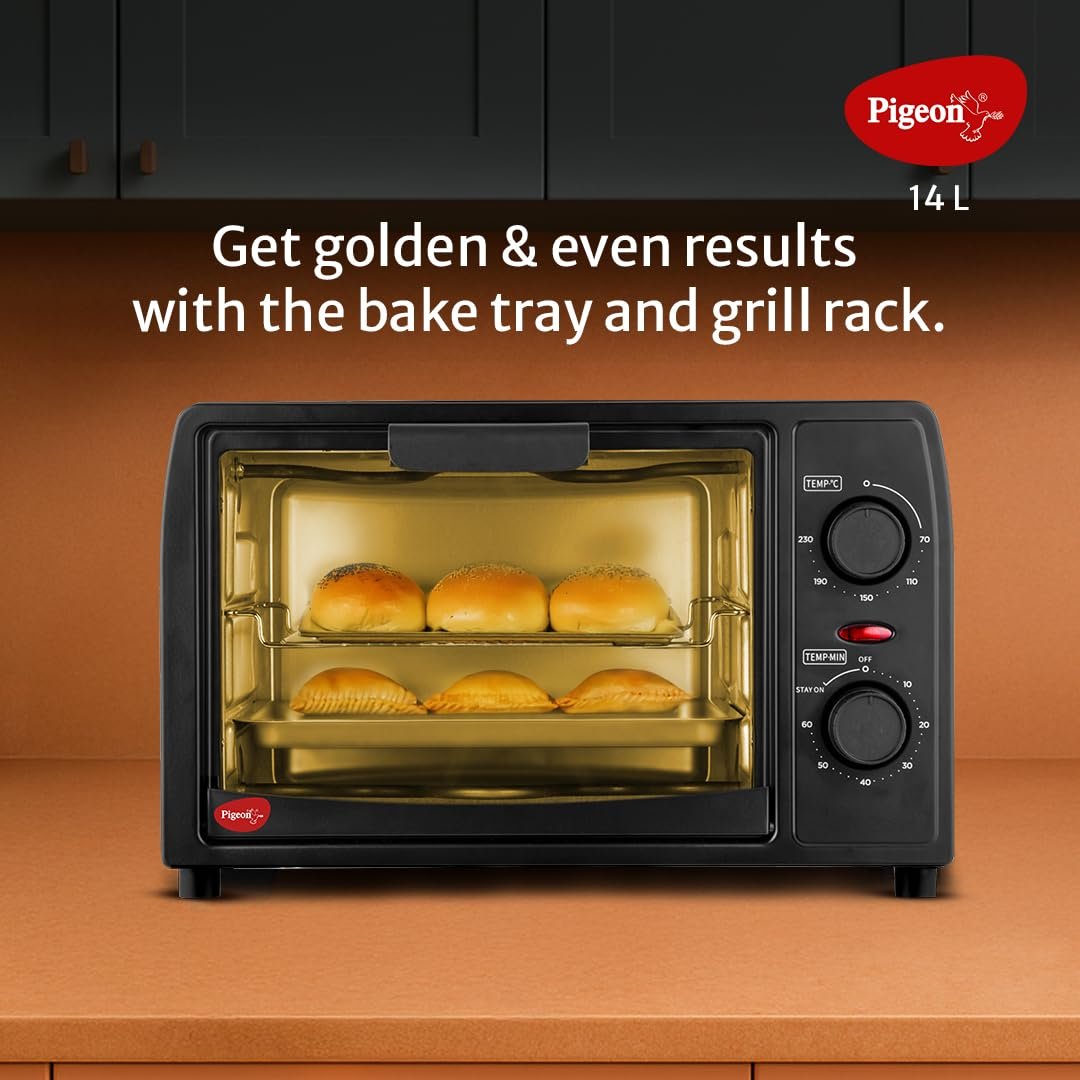 Details: Pigeon Oven Toaster Grill 14 Liters OTG| 900 Watts| Toast, Grill, Bake & Roast | Heat Resistant Tempered Glass| Black