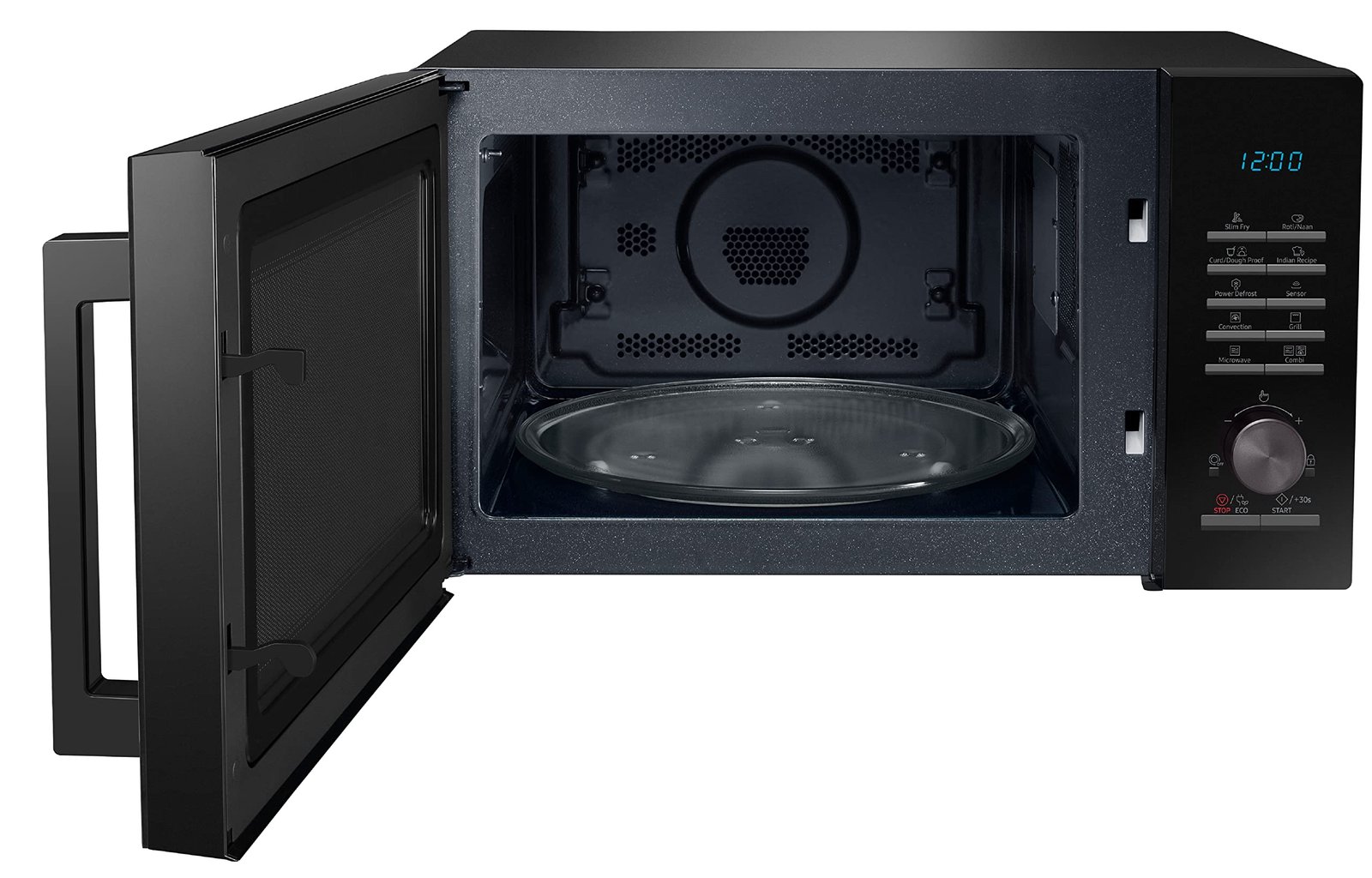 - Turntable On/Off – Experience greater flexibility whatever you are cooking. You have an option to disable the turntable, stopping the tray’s rotation. It means that every inch of interior space can be utilized as you can fit in any shape of dish. So you can easily heat large or square-shaped pans and casseroles.