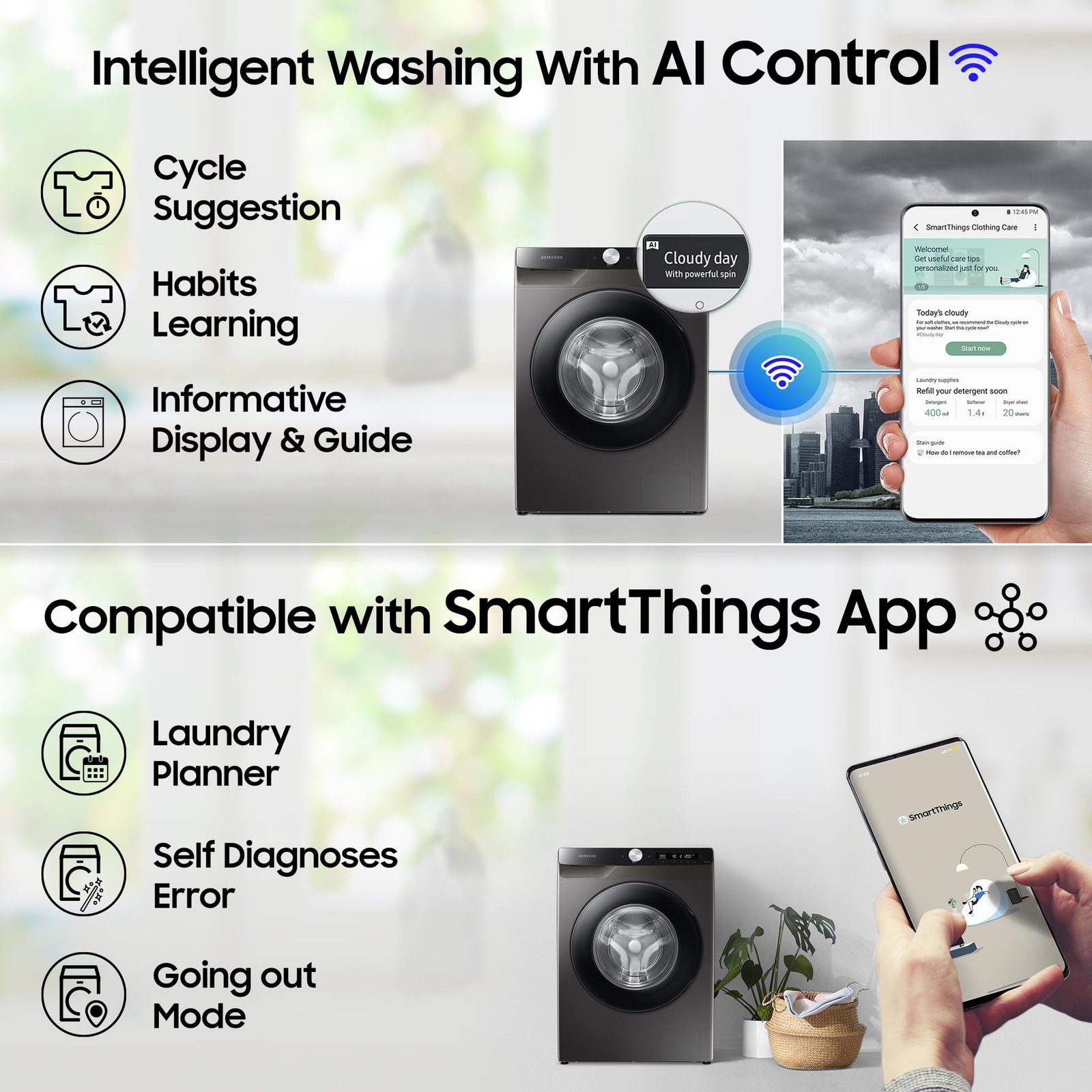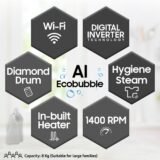 - Fully-automatic front load washing machine with Ecobubble and Bubble Soak Technology | AI Control and Wi-Fi Technology : Best Wash Quality, Energy Savings (up to 70%) and Water efficient