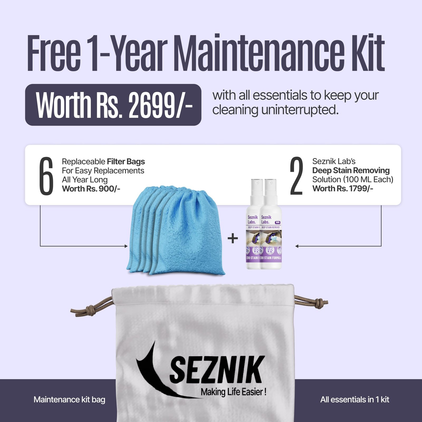 - 𝟐𝟒*𝟕 𝐂𝐔𝐒𝐓𝐎𝐌𝐄𝐑 𝐒𝐔𝐏𝐏𝐎𝐑𝐓, 𝐋𝐈𝐅𝐄𝐓𝐈𝐌𝐄 𝐀𝐒𝐒𝐈𝐒𝐓𝐀𝐍𝐂𝐄 & 𝐖𝐀𝐑𝐑𝐀𝐍𝐓𝐘: Seznik, an Indian brand, offers a 12-month offsite service warranty covering manufacturing defects, with FREE pick-up and drop-off service at your doorstep. Enjoy 24/7 lifetime support from our dedicated team, always ready to assist with any queries or concerns, ensuring uninterrupted peace of mind and satisfaction throughout the life of your Seznik Vacuum Cleaner.