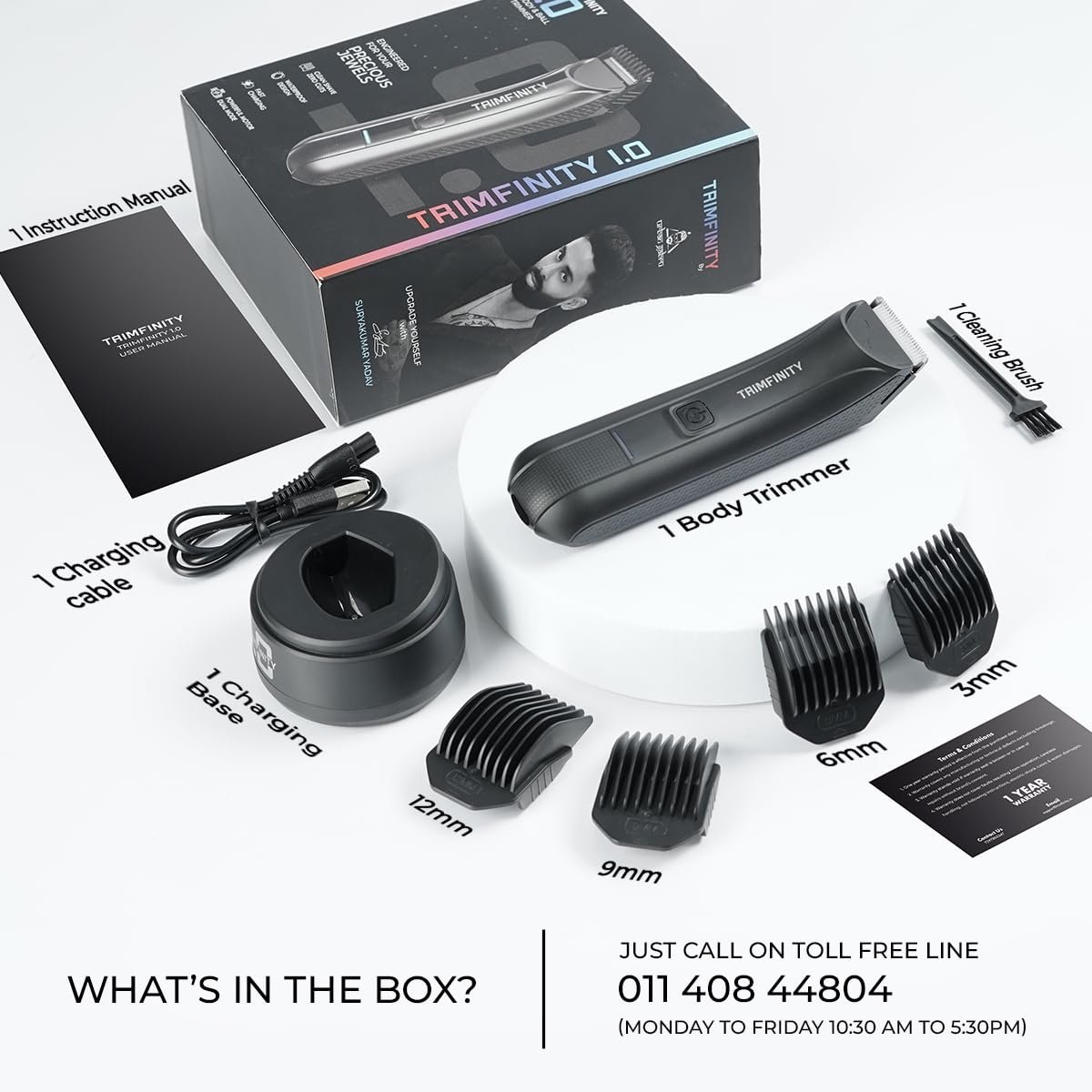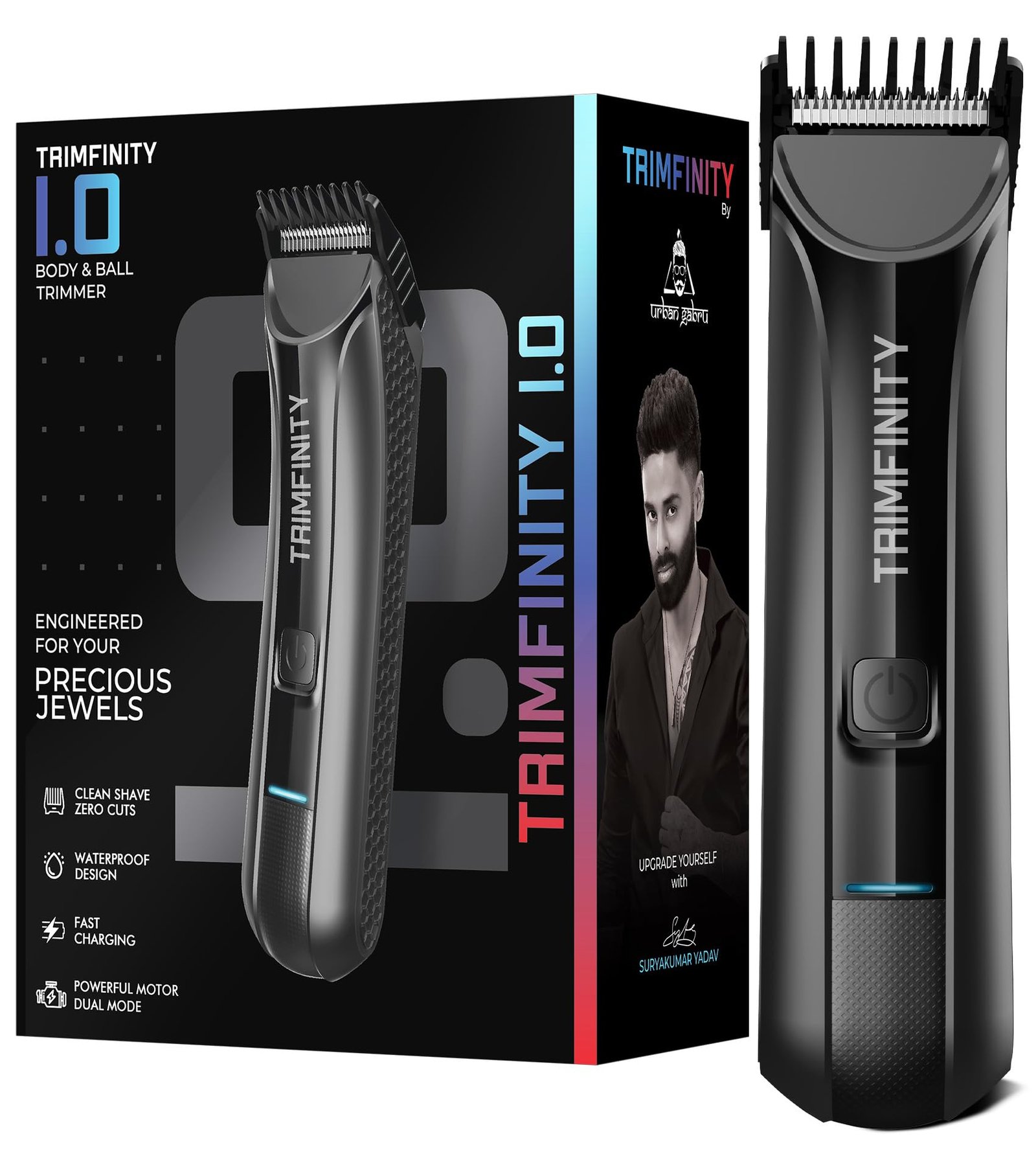 - Safe Design, Zero Cuts – Trim safely without nicks or cuts! The Trimfinity 1.0 features a stainless steel ceramic blade that ensures smooth trimming, designed to avoid irritation or injury, especially in sensitive areas like the groin.