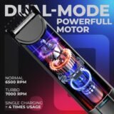 - Powerful Dual-Mode Motor – Experience superior performance with a dual-mode motor offering both normal mode at 6500 RPM for precision trimming, and turbo mode at 7000 RPM for thicker hair. Get a clean, precise trim no matter the hair type.
