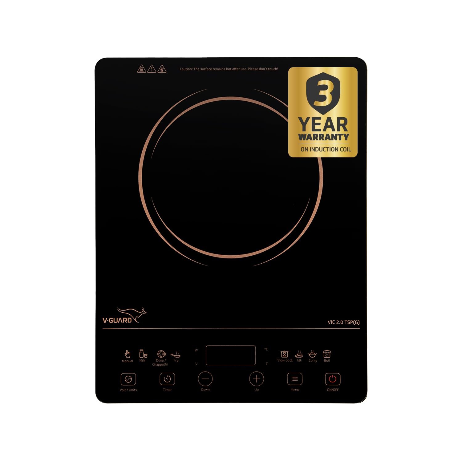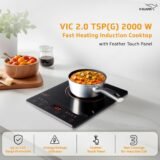 • Coverage: The V-Guard VIC 2.0 TSP(G) Induction Cooktop comes with a 3-year coverage on the induction coil, ensuring worry-free usage and PAN India support with 235+ V-Guard service centres.