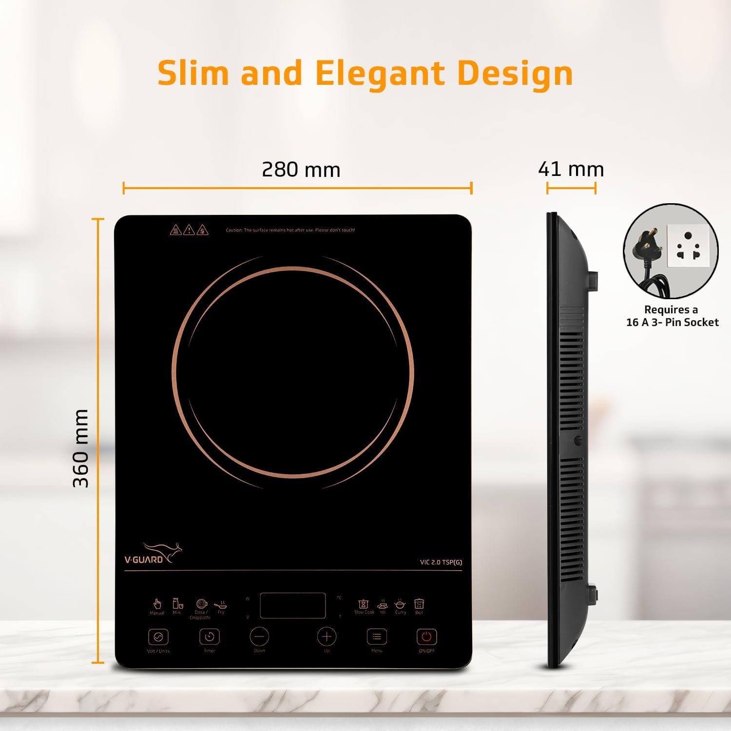 • Super Slim Design: Just 41 mm thick, the slim and elegant design of the electric stove effortlessly fits into any kitchen, making cooking stylish and clutter-free.