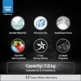 - Capacity-7 kg: Suitable for 3 – 4 members