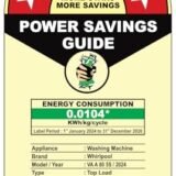 • Energy star rating 5 Star: Best in class efficiency, Annual Energy Consumption : 0.0104 KWh/Kg/cycle (Please refer BEE label for more information), Model/Year: VA A 80 5S/2024.