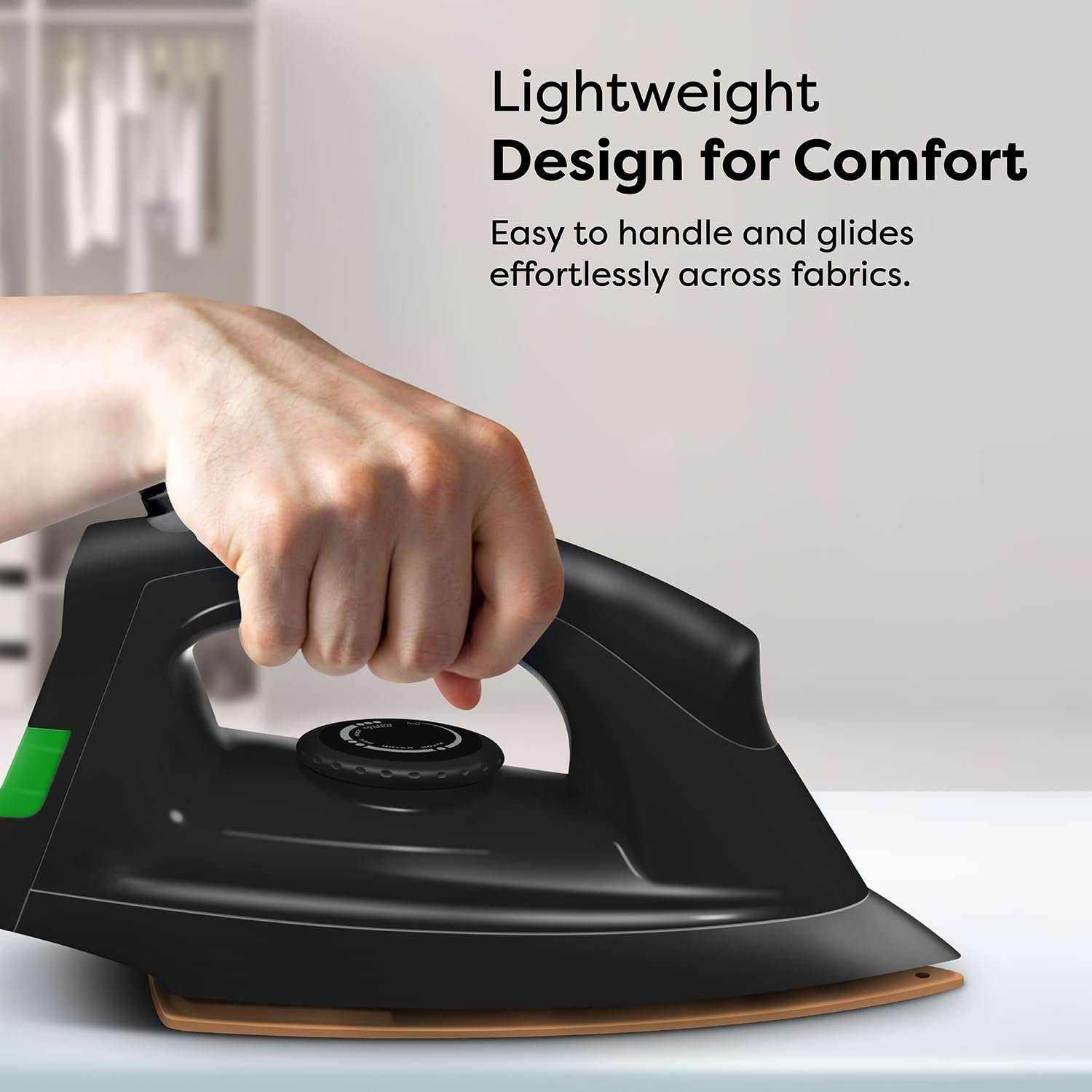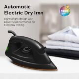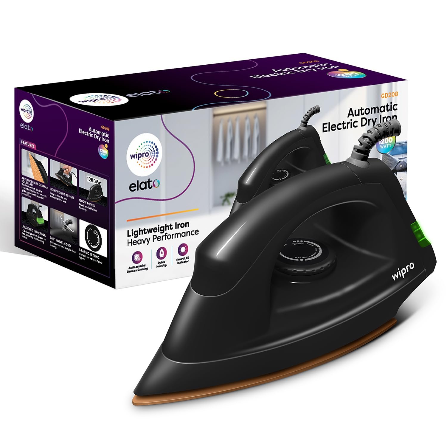 Wipro GD208 Automatic Electric Dry Iron 1200 Watt With Large LED Indicator | Large Soleplate|Anti Bacterial German Weilburger Double Coated Soleplate | Quick Heat Up – 1200 Watts, Black